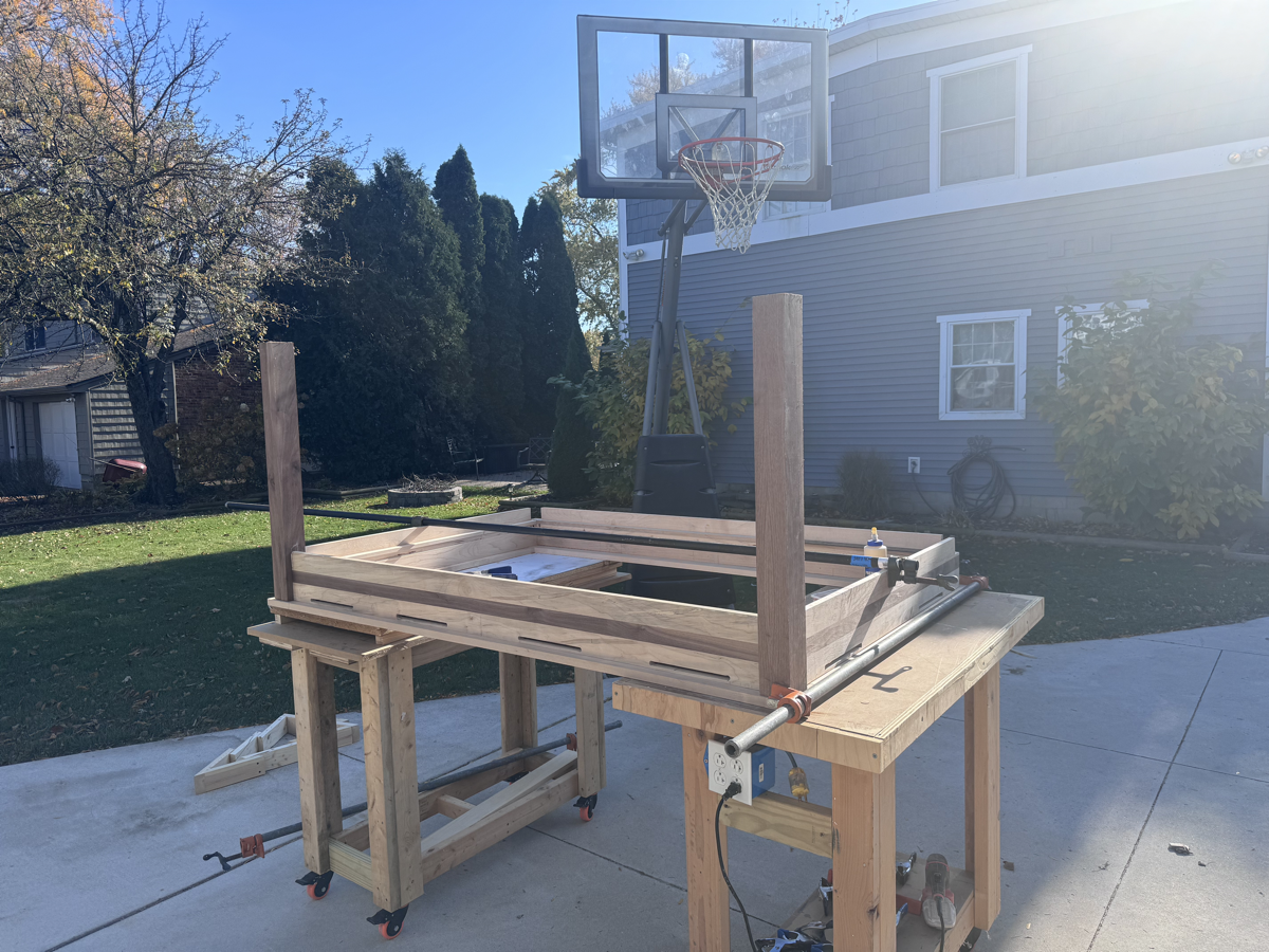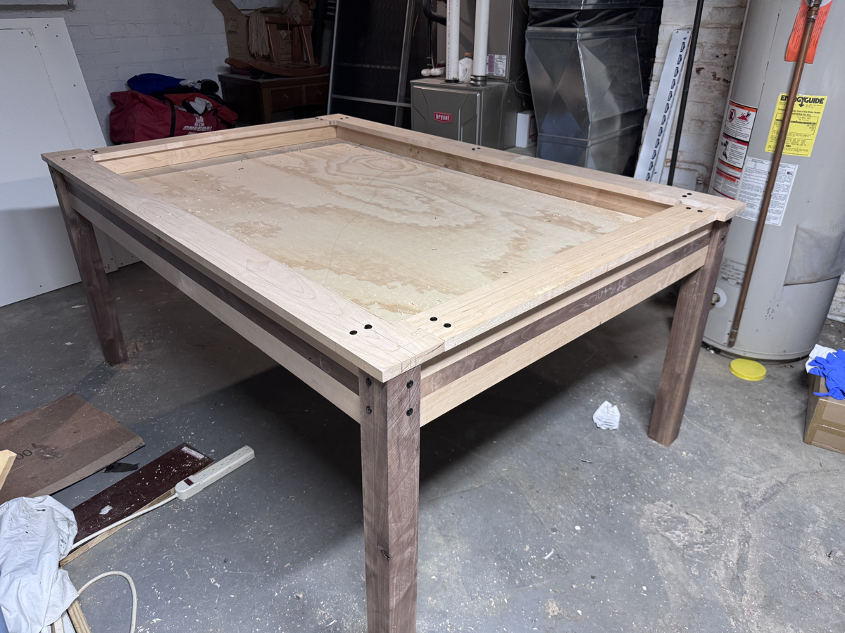 Currently I am working on a gaming table. This table is intended to be used for board gaming or RPG sessions. It will feature a sunken playfield, covered with a light padding and high quality pool-table-style cloth.