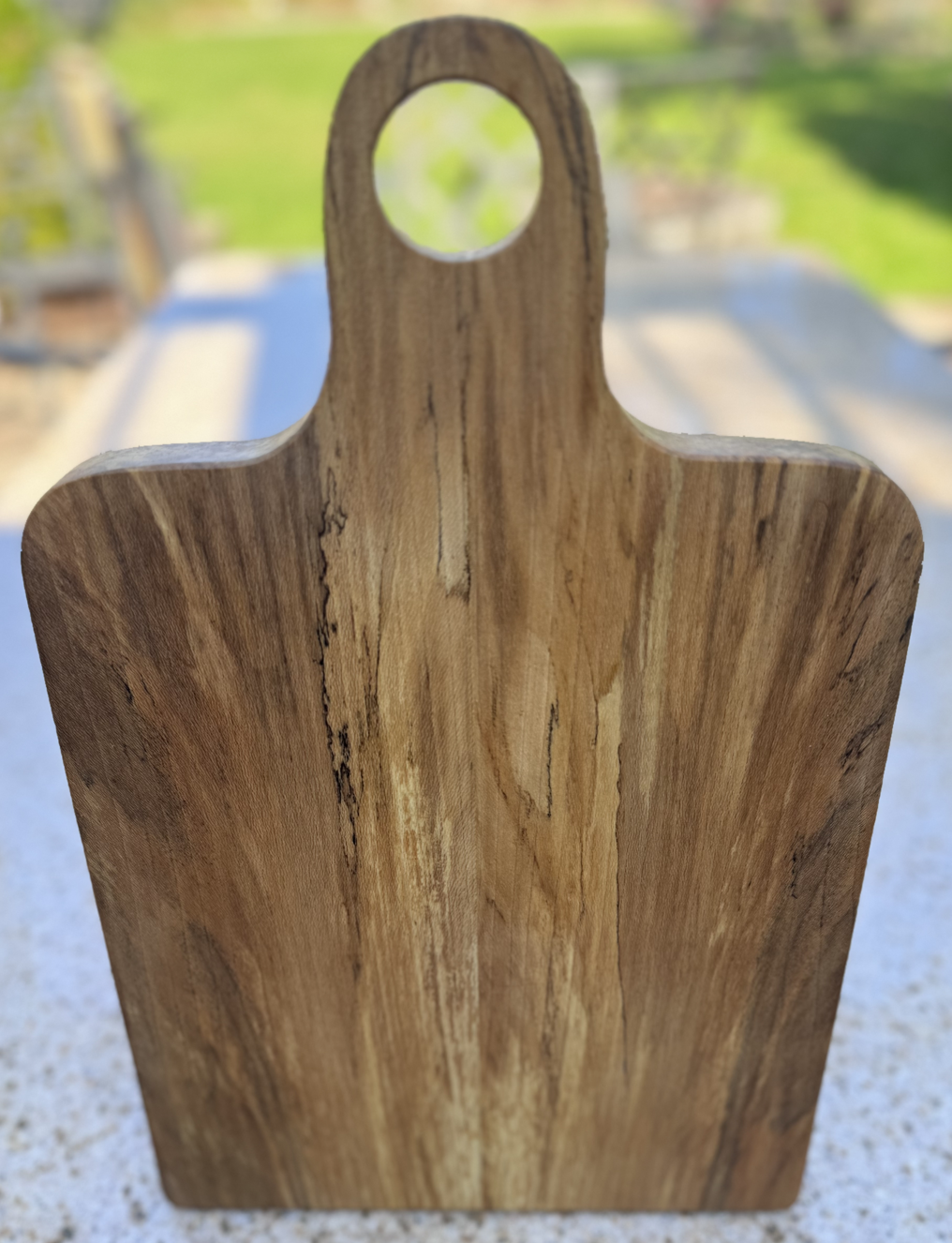 This board is made from two slabs of sycamore from the same tree that has some awesome figureing in it. About 16"x10"x1.5".